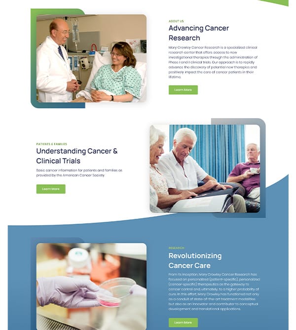 Mary Crowley’s mission is to bring hope to cancer patients through innovative clinical trials while advancing treatment for patients in the future. They were looking for a redesign of their website that showcased trial accessibility along with a straightforward approach to donations and essential patient information.