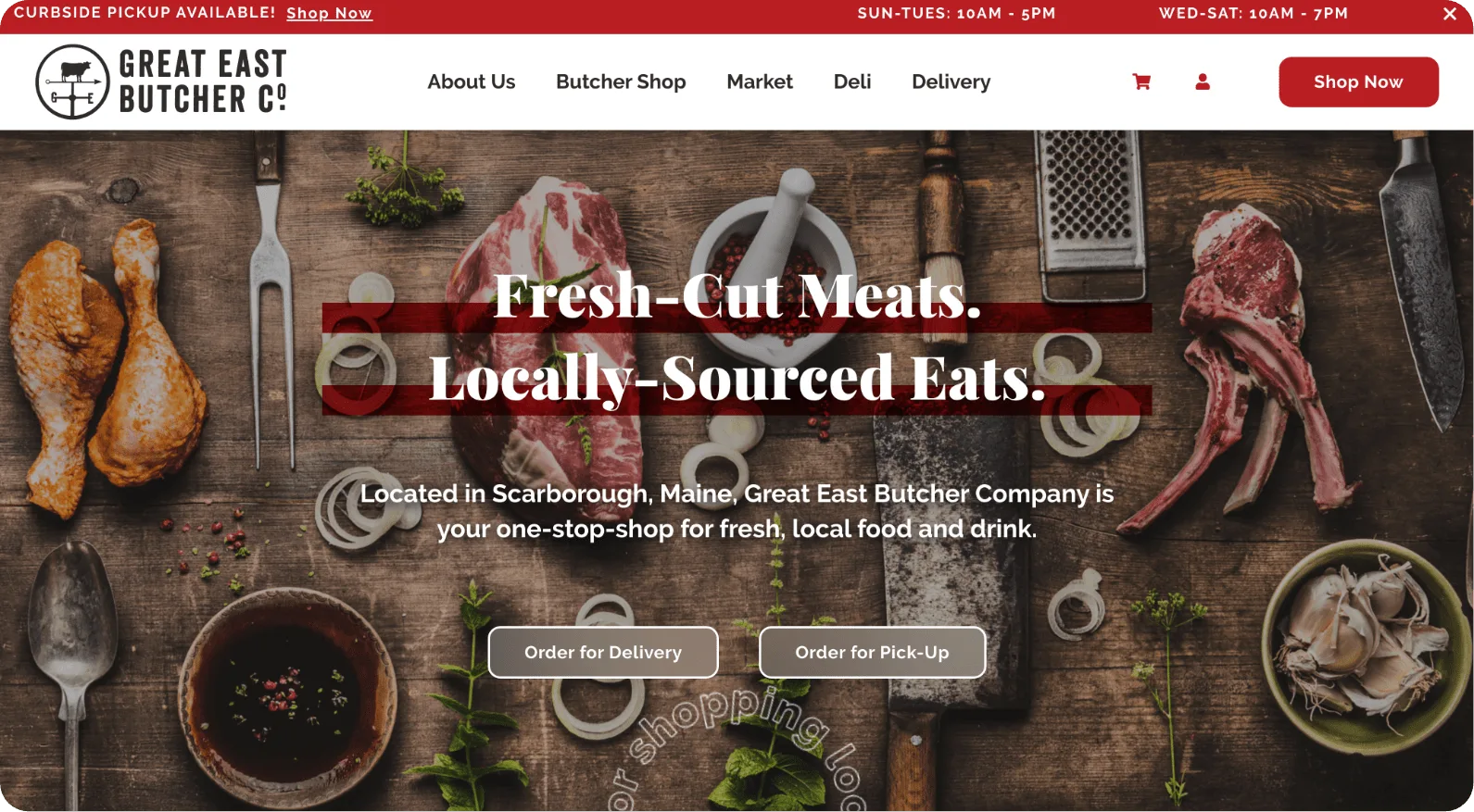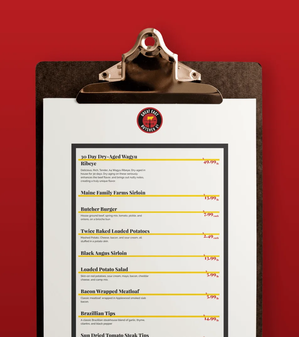 2020. The year that online ordering went from simply being convenient to being absolutely necessary. Great East Butcher Company, a butcher and food market located in Scarborough, Maine, had a website with online ordering capability, but in general, they were in need of a brand refresh and website redesign. While we were at it, we set them up with an e-commerce system with greater functionality when it came to online ordering and curbside pickup. With all the uncertainty of a tumultuous year, we wanted to create a user experience that had the same ease and familiarity as walking into your friendly neighborhood deli.