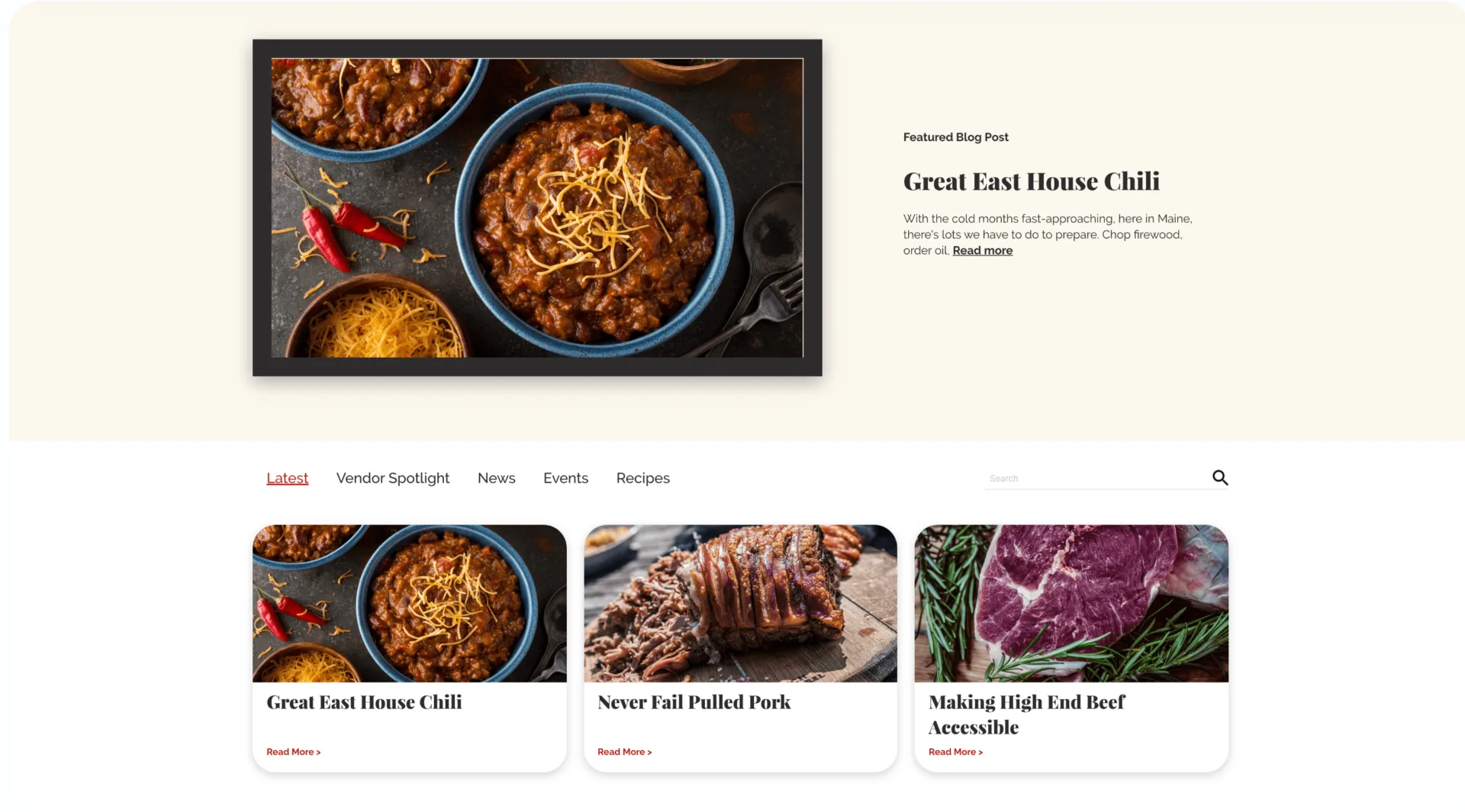 On a website already packed with value, we took it a step further by creating a blog in which Great East Butcher company could share recipes, cooking tips and tricks, featured vendors, and more. A blog is a great way to turn a website into a valuable resource, keeping users coming back in between shopping for food.