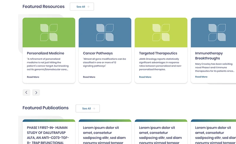 We designed a Resource Index as a convenient hub, ensuring that patients could effortlessly access all clinical trials and relevant articles necessary for making informed decisions regarding cancer research and breakthroughs.