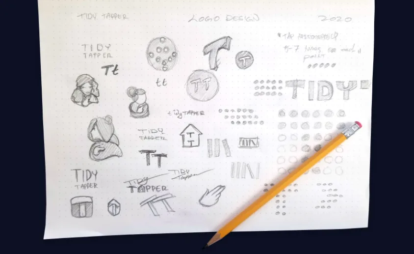 Once we got a clear sense of what Tidy Tapper was drawn to visually, we started the logo creation process. This always starts the old-fashioned way: by putting pencil to paper. Once logos have been digitized in Adobe Illustrator, the team picks three finalists to present. We want to make sure the three options are incredibly diverse, giving the client three different directions they could pursue.